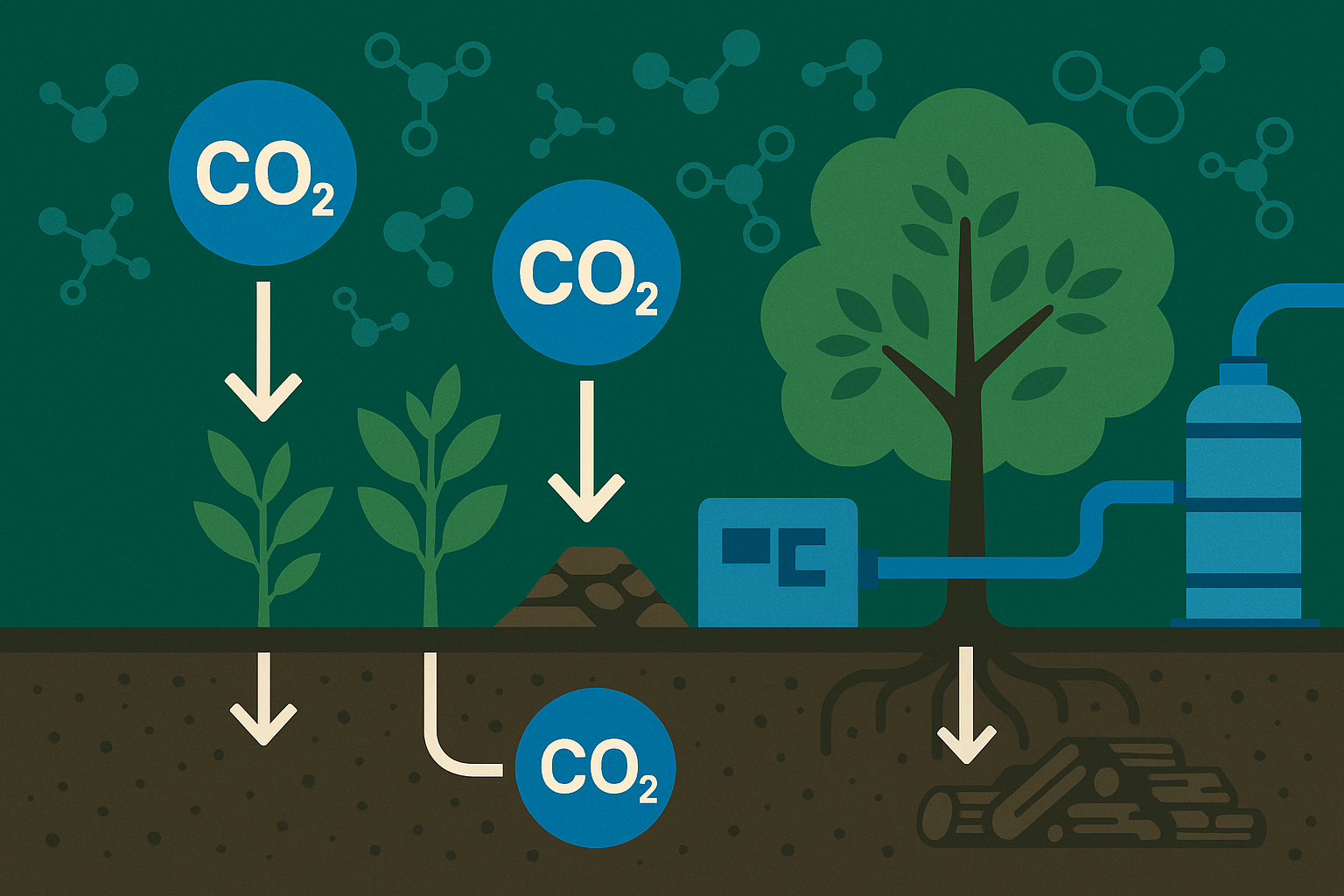 植物は成長する過程で大気中のCO₂を吸収します。通常なら枯れて腐敗し、再びCO₂として大気に戻ってしまいます。しかし、この技術では腐敗を防ぎ、物理的に隔離することで、炭素を長期間固定化するのです。