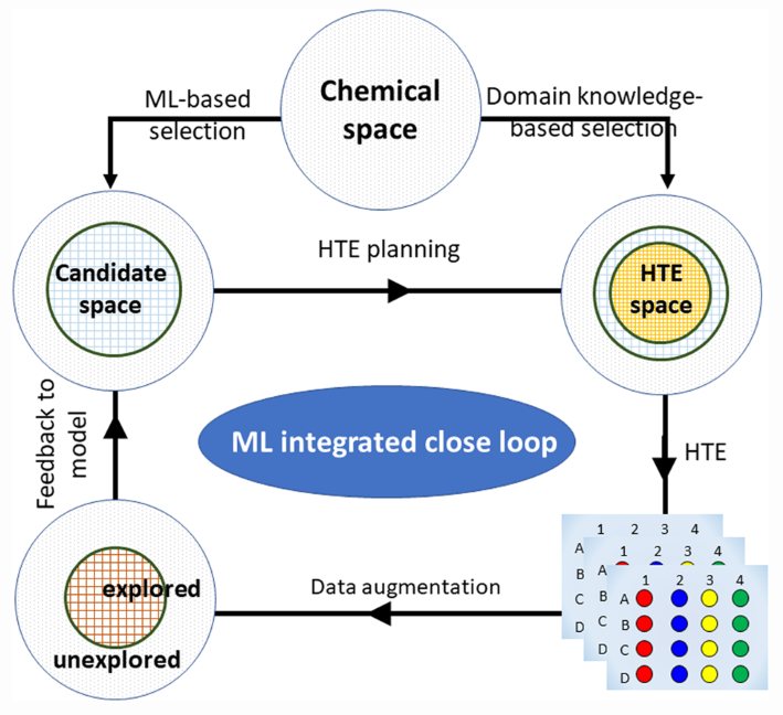 図1: 機械学習と高スループット実験を組み合わせたクローズドループ型材料探索の概念図