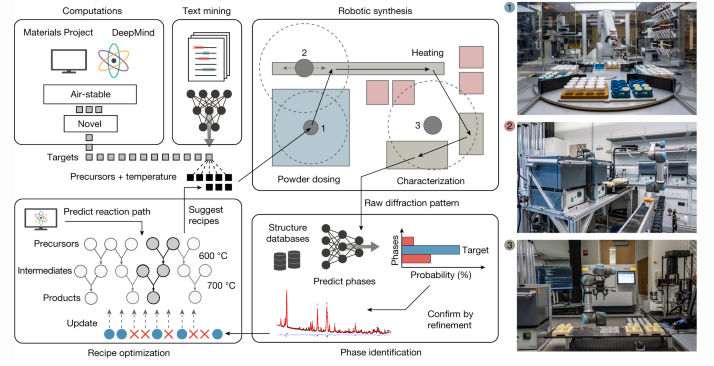 https://deepmind.google/blog/millions-of-new-materials-discovered-with-deep-learning/ - arXiv / Science Advances reference page – “Autonomous materials synthesis via hierarchical active learning of nonequilibrium phase diagrams”