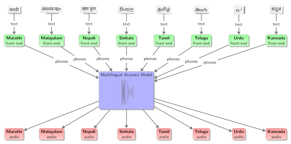 多言語TTSの設計思想を一言で言うと、共有できるところは共有し、混ざると困るものは分離する